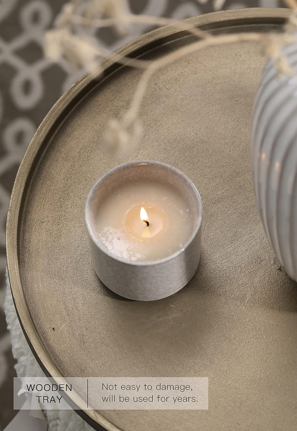 - 【Multiple Use】 This round wooden tray is perfect for displaying your candle holders, vases and other tabletop ornaments. This round vanity tray is also a good choice to store your makeup. This rustic tray also can be used to hold some glasses, coasters, cups, and other things, which can make the desktop neater and the home more comfortable.