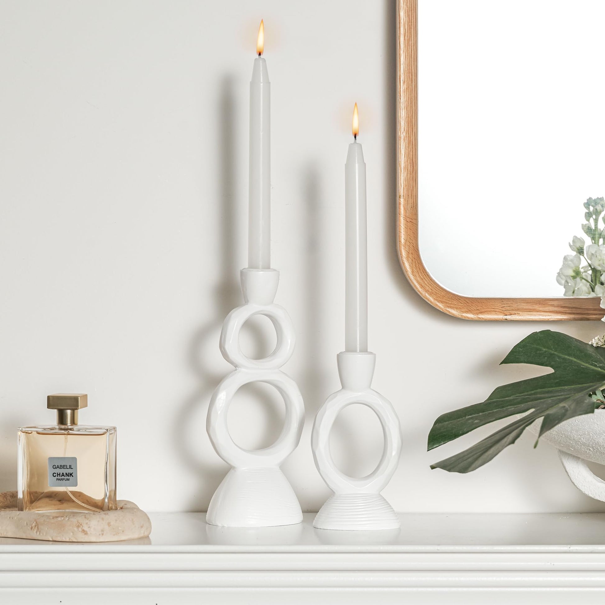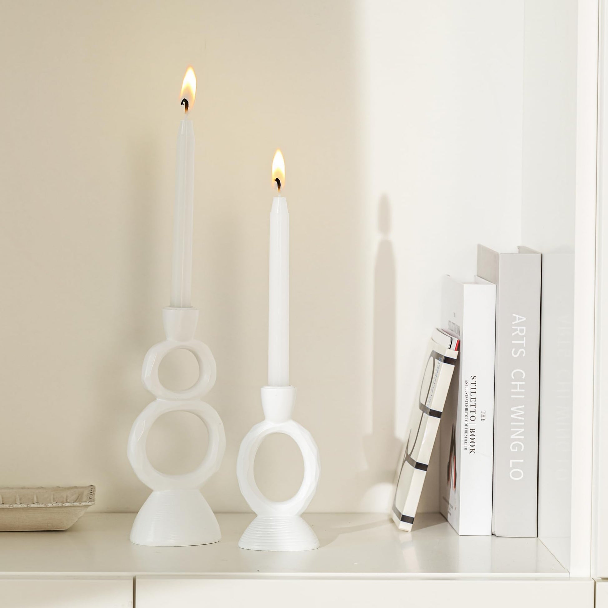 - 【Unique Design】 The white candlestick holders bring artistic charm with their unique looped shapes. These candle holders for candlesticks feature a white finish and textural design that blends beautifully with modern home decor.